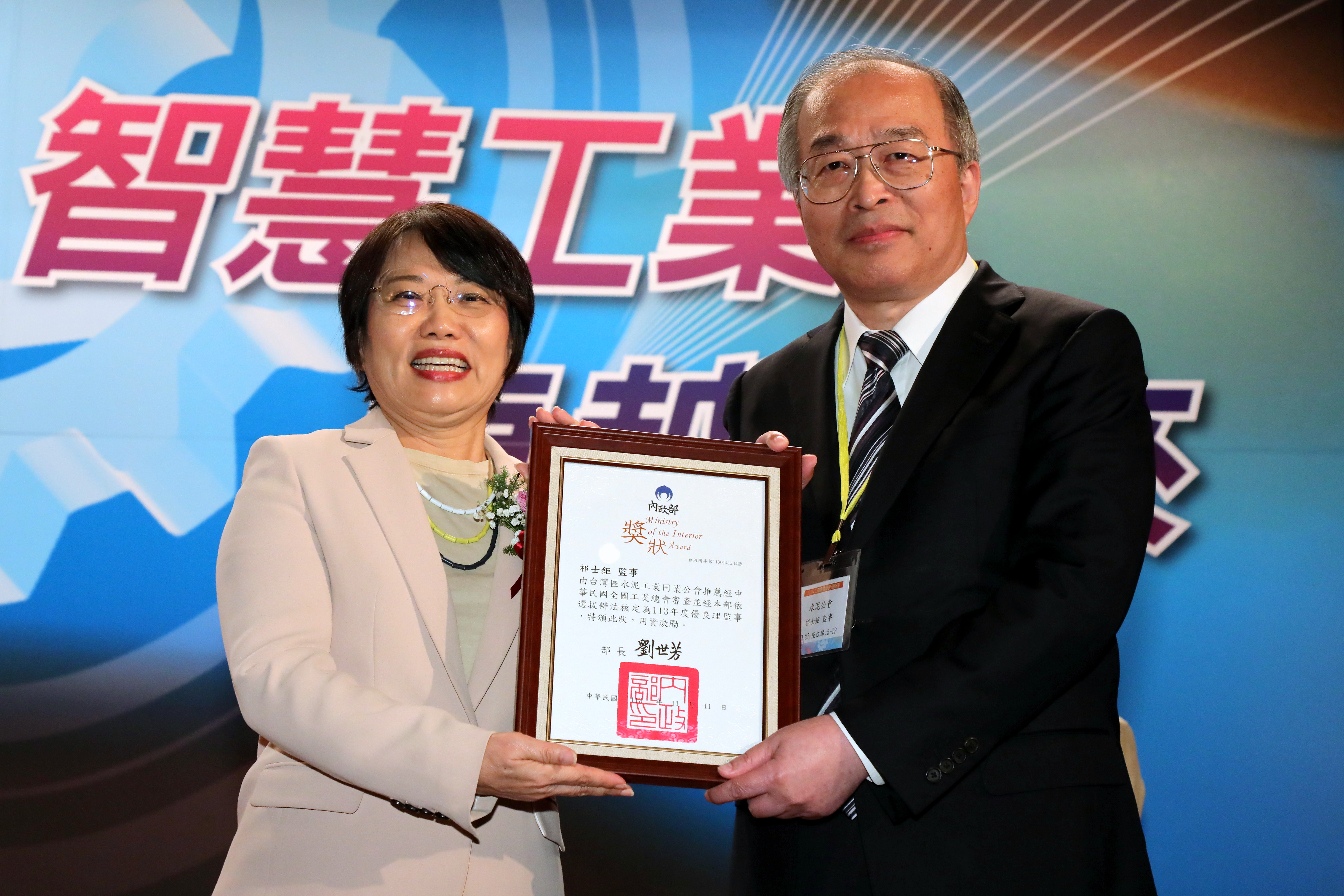 113年工礦團體優良理監事選拔本會祁士鉅監事當選